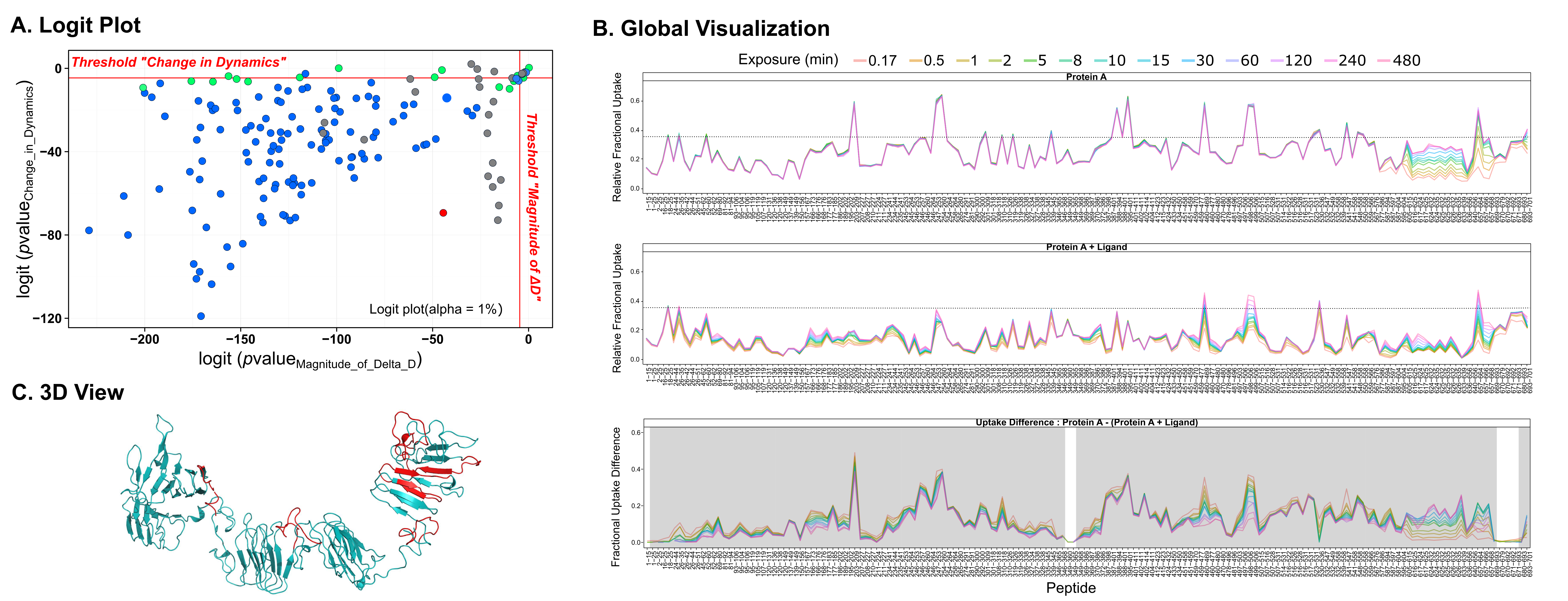 Biological threshold: A “Biological Threshold” has been added in the "Global visualization" tab. This parameter allows the identification of statistically significant peptides displaying Fractional Uptake Difference values below the user-defined threshold (default value sets to 2%).
